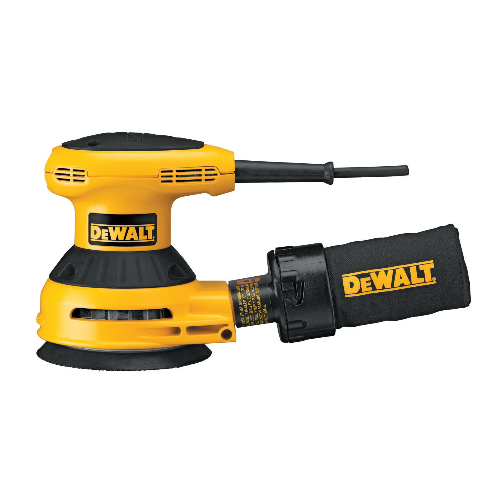 DeWALT® Random Orbit Sander Kit, Kit, 5 in Size, 12000 opm Speed, 3 A, Palm Grip Handle, Corded Cord, Rocker Switch Control, 11 in L Dimensions