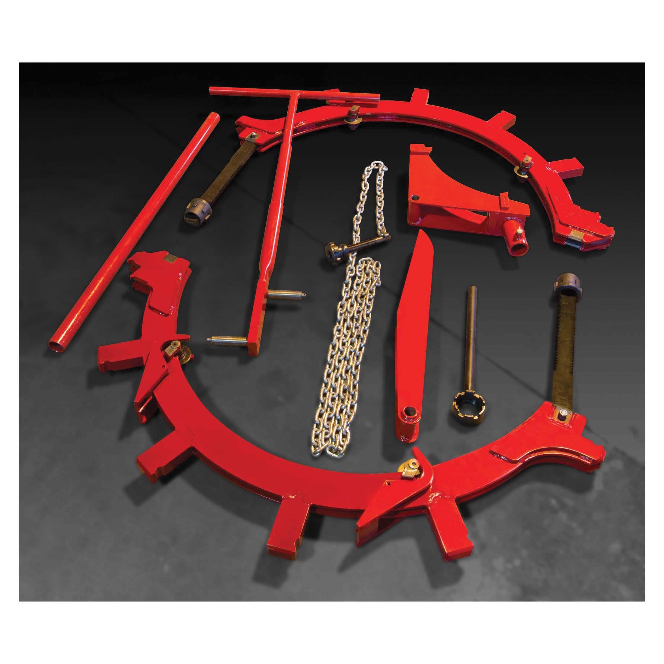 Rotary™ pipe cutters cold cut large diameter steel, most stainless steel, ductile, and cast iron pipe in close quarters. The low profile design of the LCRC models needs only 5 in clearance for up to 16 in pipe diameter and only 8 in clearance for the RC20 and RC24 which cover pipe up to 24 in. All LCRC, RC20, and RC24 cutters are supplied with a slip-on handle that is used to turn the cutter around the pipe in one direction. The handle is also used to tighten the cutter every half revolution. For large diameter pipe, move up to the RC30, RC36, or RC42S cutters which need 11.8 in clearance. They feature a long handle with a ratcheting mechanism and include a separate, professional-grade wrench to tighten the cutter at every half revolution. Rotary pipe cutters are the best manual cutters for ductile iron and a great option for steel pipe. With good leverage from the tool's long handle, pipe snaps off squarely before wheel penetrates halfway through pipe. Rotary pipe cutters have heavy-duty frames. All sizes use the same cutter wheels: either RCS8-36 for steel and RCI8-30 for ductile and cast iron. Optional RCX wheels cut up to 25/32 in wall thickness for steel pipe. Note: RC42S cannot be converted to or from an RC30 or RC36. They are separate tools.