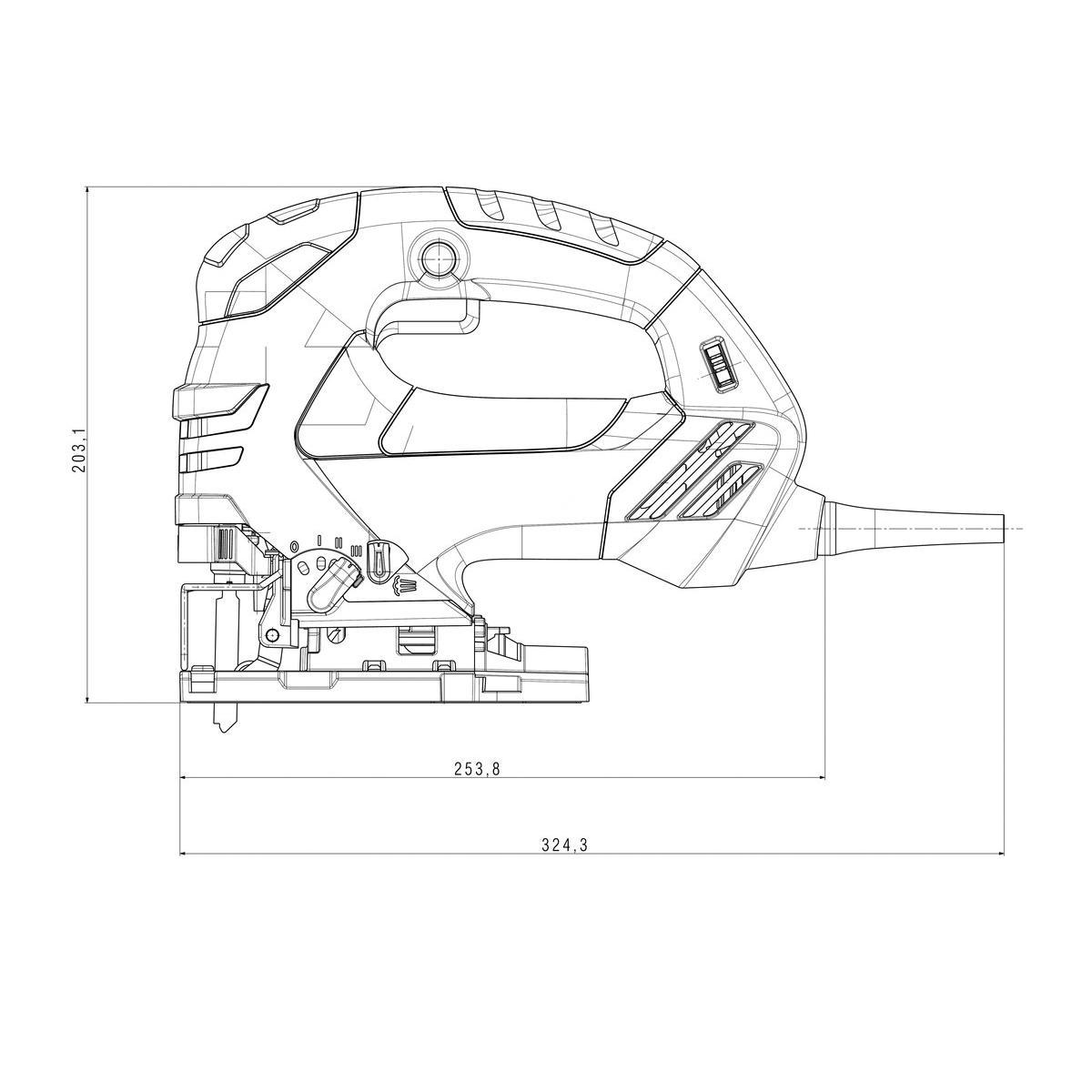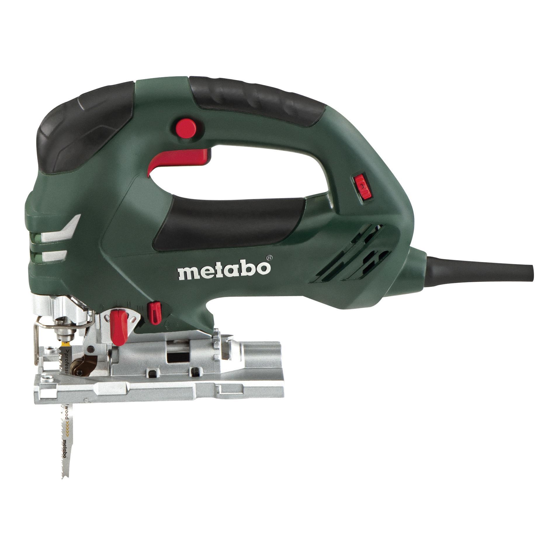 metabo® Jigsaw, Variable Speed Orbital, Bare Tool, Cutting Capacity: 3/8 to 5-1/2 in, 1000 to 3100 spm Strokes per Minute, 1000 to 3100 rpm Motor, 7 A, Die-Cast Aluminum Housing Material, Top/D-Handle Handle, Corded Cord, Vario-Tacho-Constamatic Speed Control, 10 in L x 3-5/32 in W x 8 in H Dimensions
