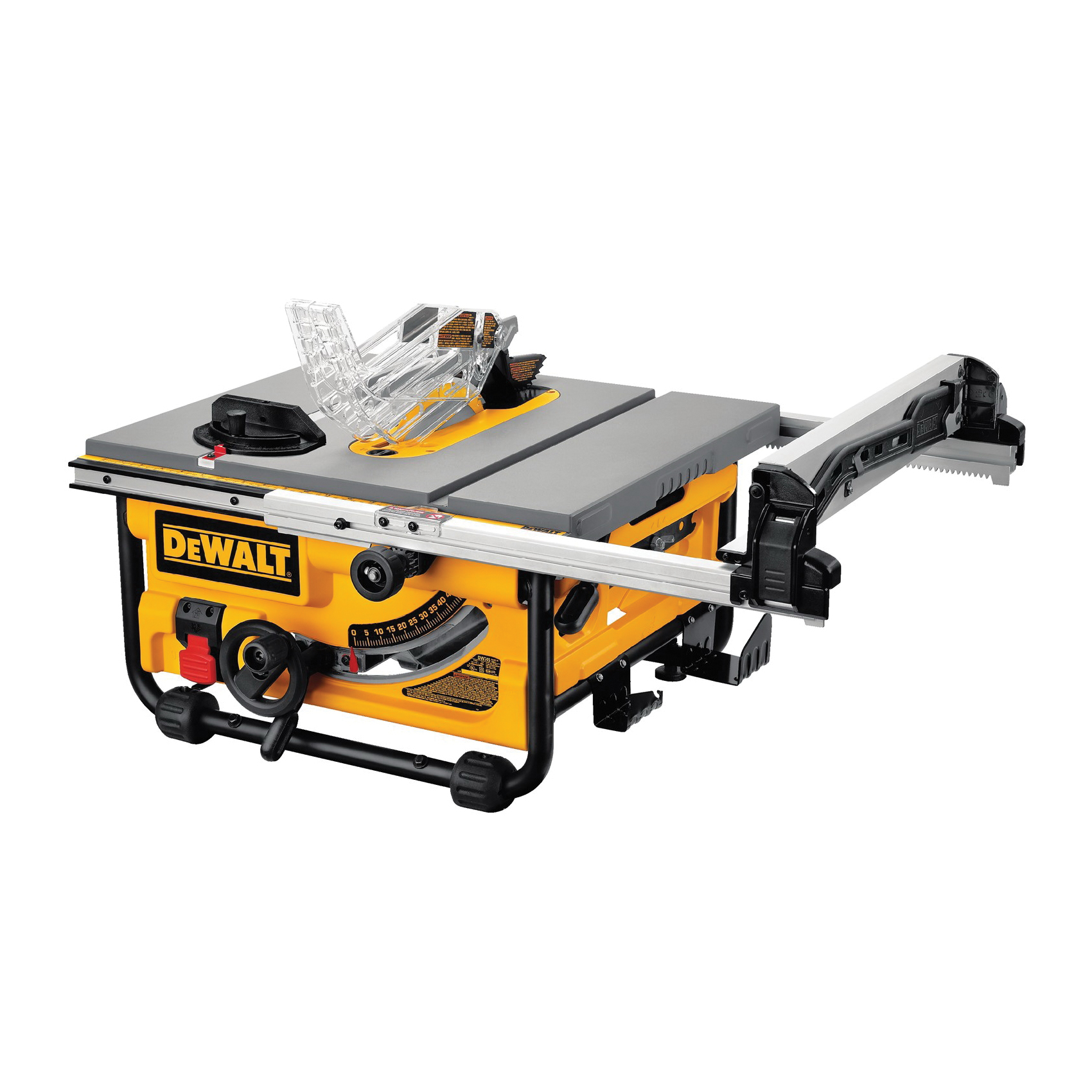 DeWALT® Table Saw, Compact Jobsite, 10 in Diameter Blade, 5/8 in Arbor/Shank, 45 DEG Capacity: 2-1/4 in, 90 DEG Capacity: 3-1/8 in, 3850 rpm Speed, Cutting Capacity Rip Left: 12 in, Cutting Capacity Rip Right: 20 in, 22 in L x 16 in W Table, Left Blade Tilt, 120 VAC, 15 A